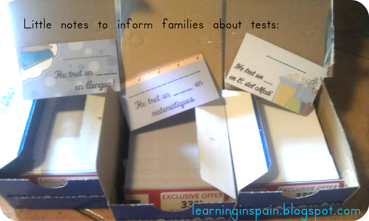 We are required a test every month or so on each subject and these are my little cards to inform families about the results of a test. It says something like ‘I got an __ on math/science…’